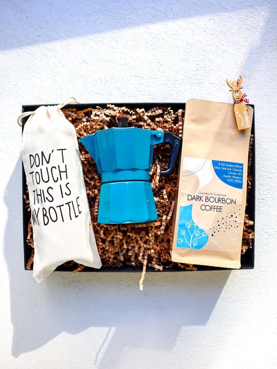 Yılbaşı Kutusu No18 – Detox Bottle & Moka Pot & Dark Bourbon 250 gr Kahve