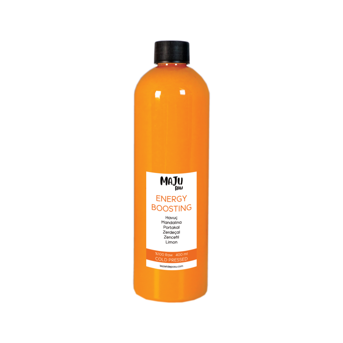 Maju Raw Energy Boosting %100 soğuk sıkım meyve ve sebze suyudur. Meyve sebzelerin en doğal ve taze olanları sizler için özenle sıkıp şişelendi. Taptaze meyve ve sebzeler günlük olarak seçilir ve hiçbir katkı maddesi, koruyucu eklenmeden şişelere doldurulur. Tatlandırıcı veya şeker içermez. Siparişinizle beraber taze olarak sıkılıp, gönderilir.