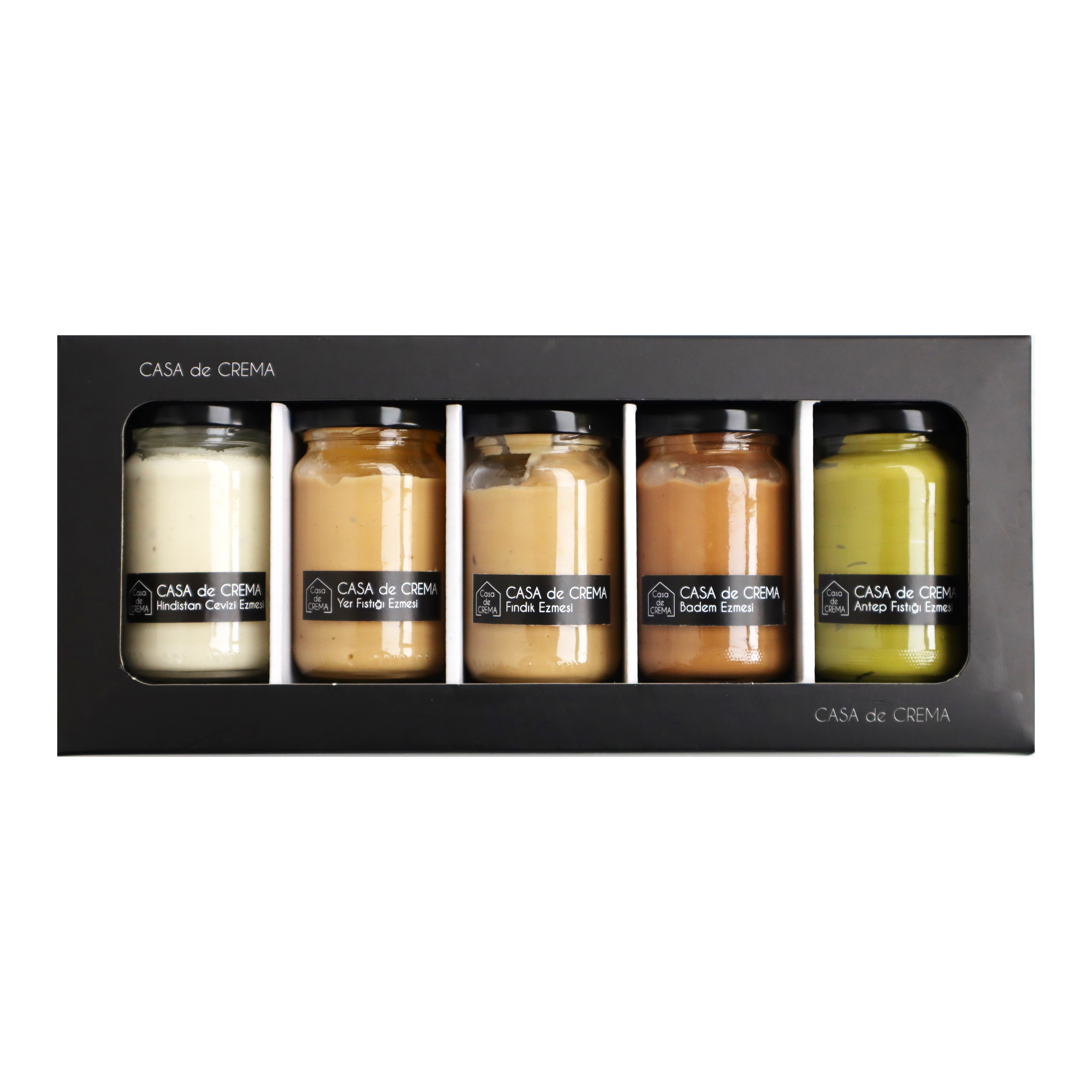 Casa de Crema Fındık Ezmesi: Fındıkların öğütülmesiyle elde edilen lezzetli bir gıda ürünüdür. Fındıklar, protein, sağlıklı yağlar, E vitamini, magnezyum ve lif açısından zengin bir kaynak olduğu için fındık ezmesi de besleyici bir seçenek olarak öne çıkar. Yoğun fındık aroması ve kremamsı dokusuyla ekmek, kraker veya meyvelerle birlikte tüketilebilir. Ayrıca, tatlıların içerisinde veya üzerinde de kullanılabilir.Fındık ezmesi, kahvaltılık olarak tüketilebileceği gibi, özellikle sporcuların da tercih ettiği bir enerji kaynağı olarak kullanılabilir.